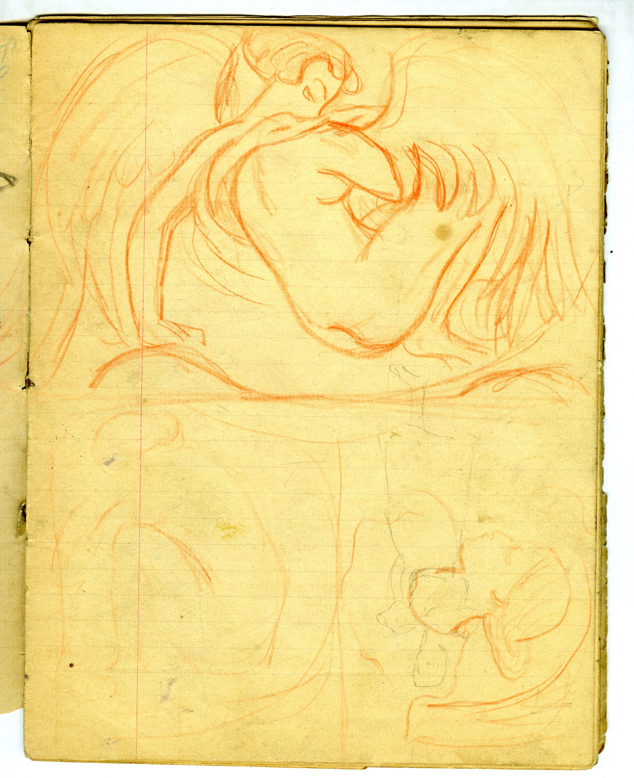 ill 2. Page d’un carnet de croquis, en haut « Léda et le cygne », sanguine, Fondation Dina Vierny – Musée Maillol